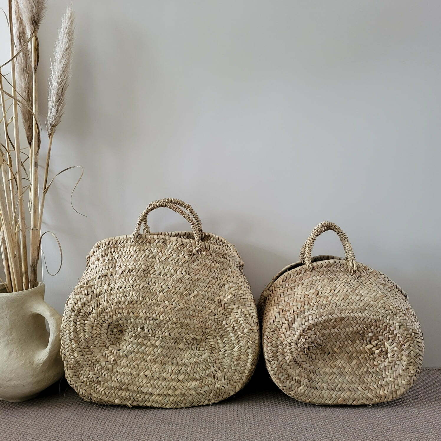 Marokkaanse rieten mand/tas, ovaal, maat L.
