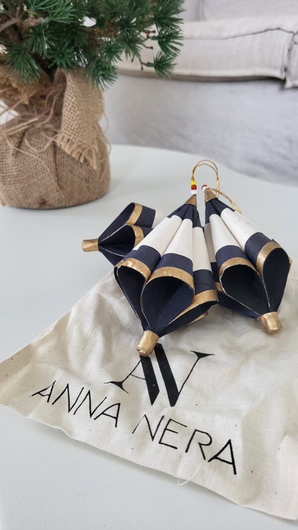 Mooie kersthangers gemaakt van handgeschept papier van waterhyacinten.
