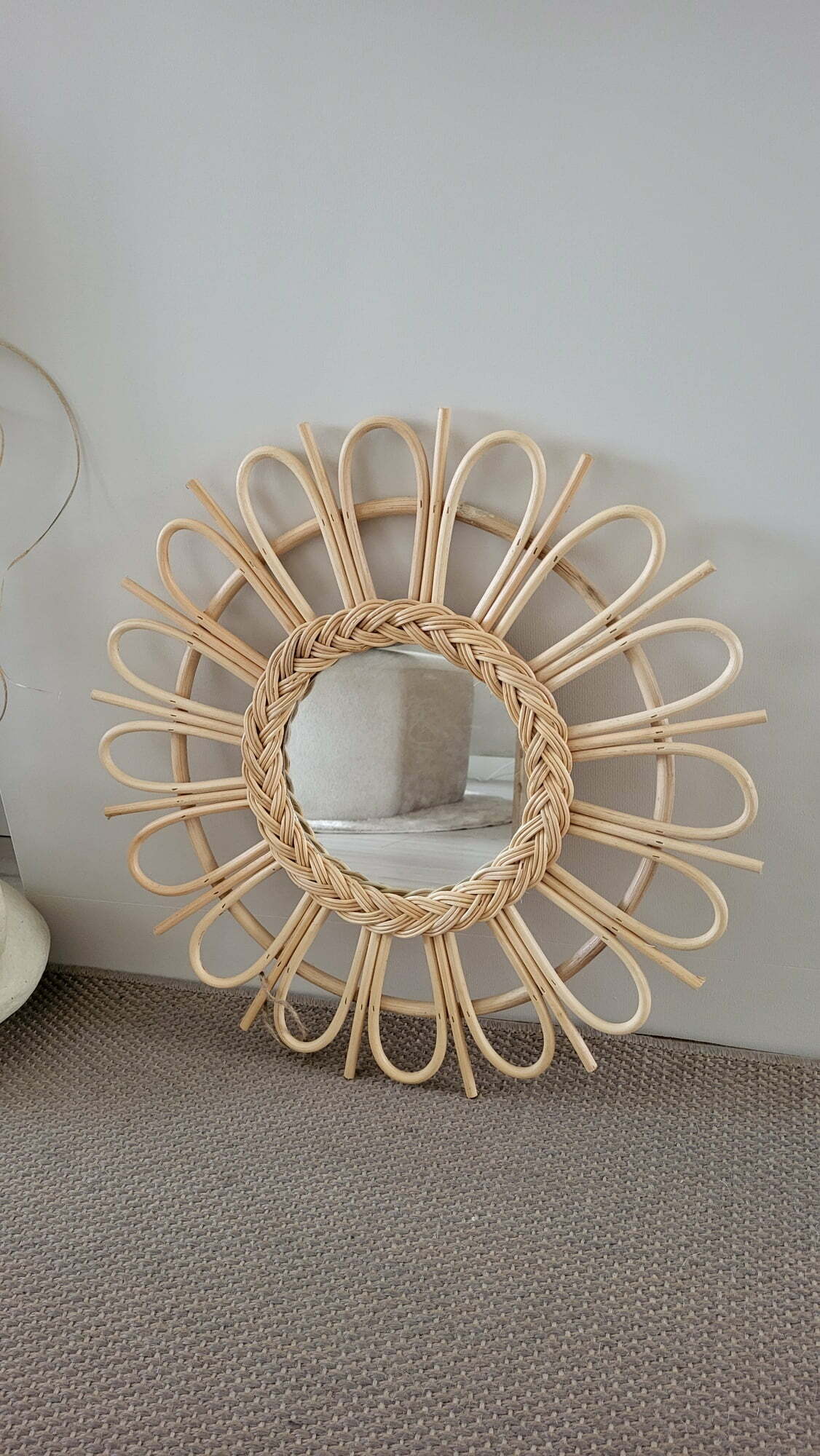 Rotan spiegel, 45 cm.