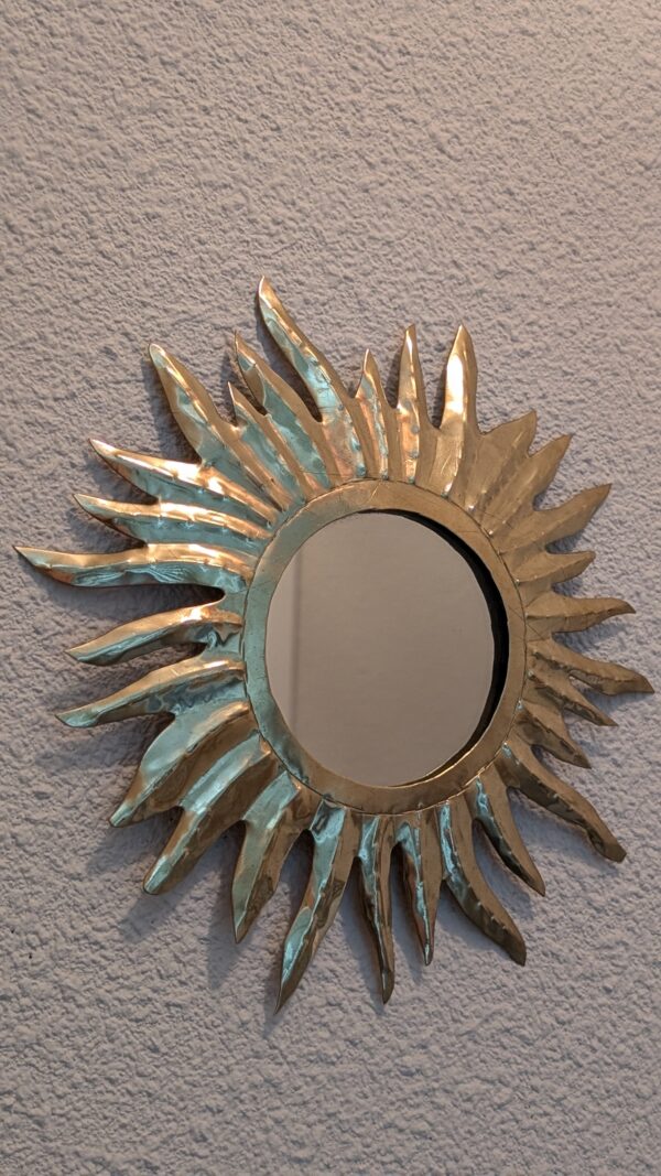 Deze prachtige zonvormige messing spiegel is een meesterwerk,