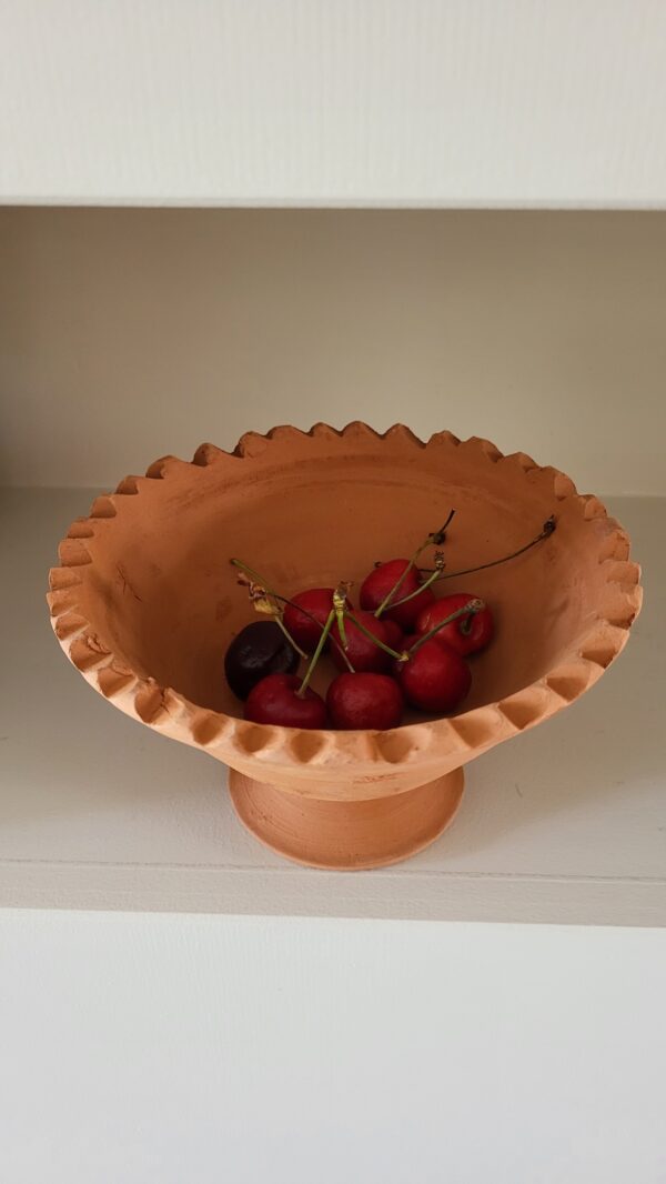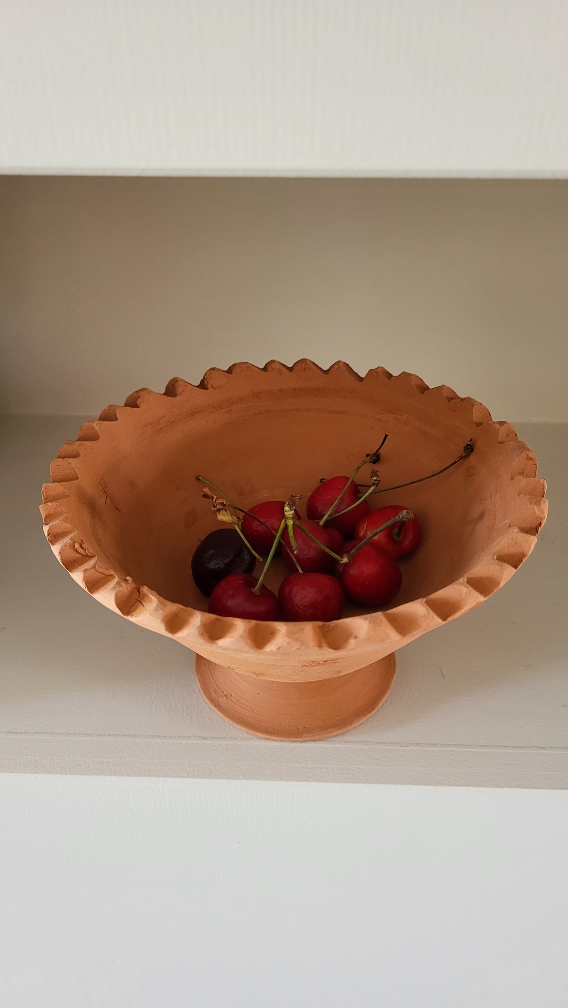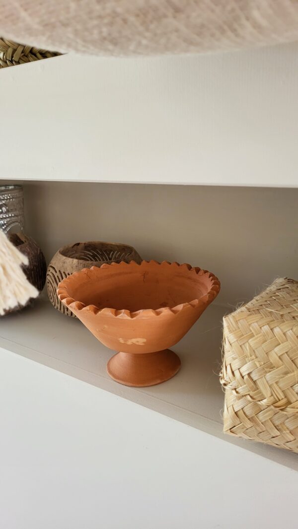 Schaaltje Terracotta met zig zag structuur, op een klein pootje